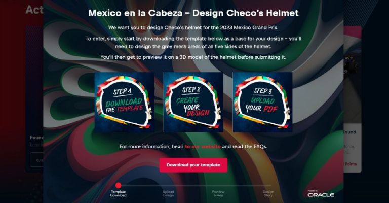 El equipo de Oracle Red Bull Racing, junto con Checo Pérez, acompañados por inter.mx y Telcel-Infinitum-Claro hicieron una convocatoria que consiste en encontrar a la persona que va a diseñar el casco del piloto mexicano para el próximo GP de México 2023.