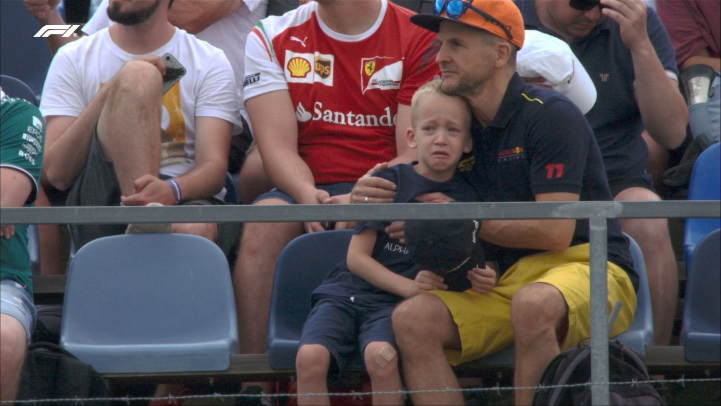 Checo Pérez mostró frustración tras salirse de la pista del Gran Premio de Hungría 2023, pero ese mismo sentimiento también llegó a las gradas, particularmente a un pequeño aficionado que fue captado por las cámaras llorando junto a su papá, todo porque el compañero de Max Verstappen cometió ese error.