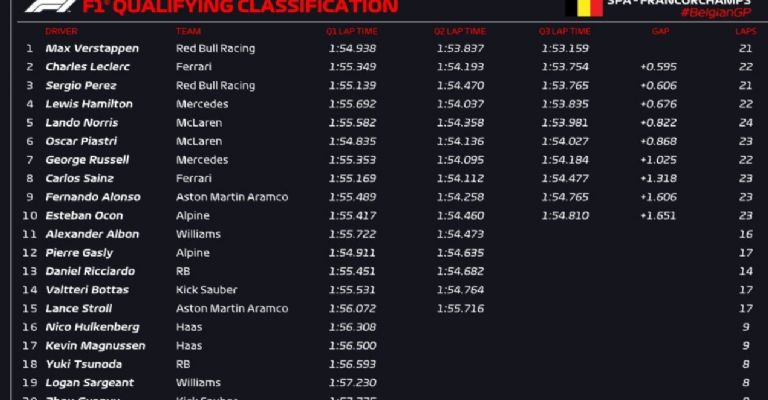 Resultados Clasificación GP de Spa-Francorchamps 2024