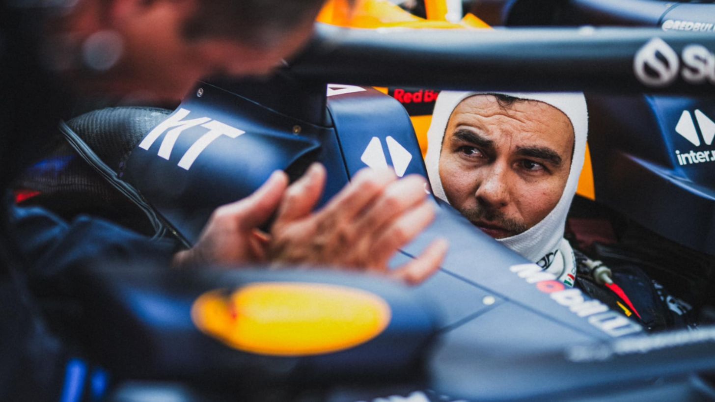 El mexicano intentó mover el RB20 para salir de la trampa de arena y continuar la clasificación, e incluso, pidió que alguien lo empujara si era posible, pero evidentemente esta acción no era posible, por lo que al final tuvo que salir del auto y abandonar la clasificación en la que hasta ese momento, se encontraba en décimo lugar.