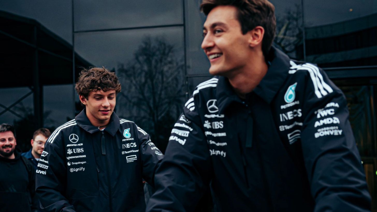 En la cuenta oficial de la escudería se publicó una fotografía donde aparecen George Russell y Andrea Kimi Antonelli vestidos con los trajes de automovilismo.