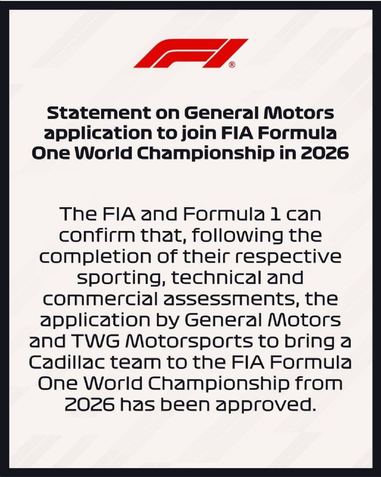 Cadillac ha sido aprobado como equipo de Fórmula 1 para 2026