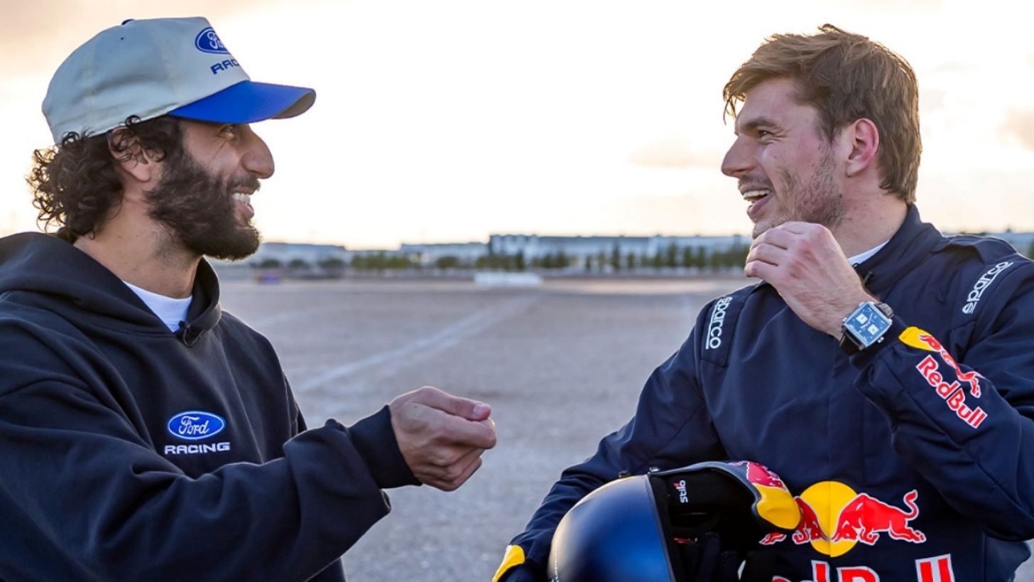 Daniel Ricciardo estuvo en primera fila para atestiguar este desafío, en el que Verstappen condujo un Ford Fiesta, campeón del mundo en el Mundial de Rally 2017, para una carrera sprint de 250 metros.