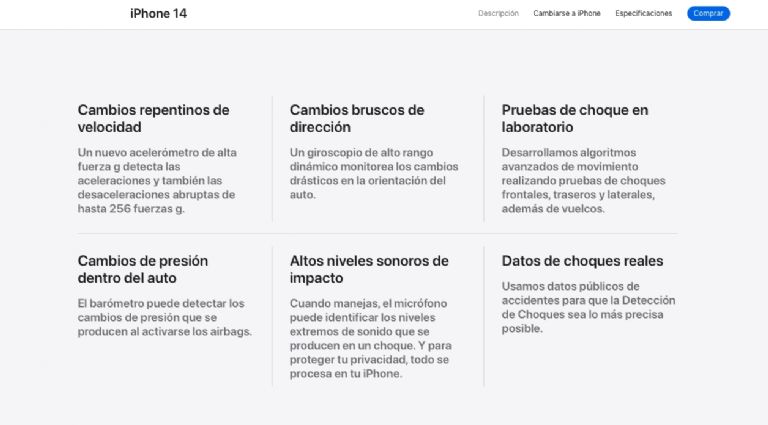 Esta función presente en el iPhone 14 y en los Apple Watch Series 8 y Ultra, se activa cuando detecta una colisión o un movimiento brusco.