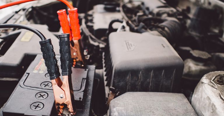 - Saca los cables para pasar batería. Debes contar con cable positivo (rojo) y negativo (negro) y verificar que estén en buen estado.