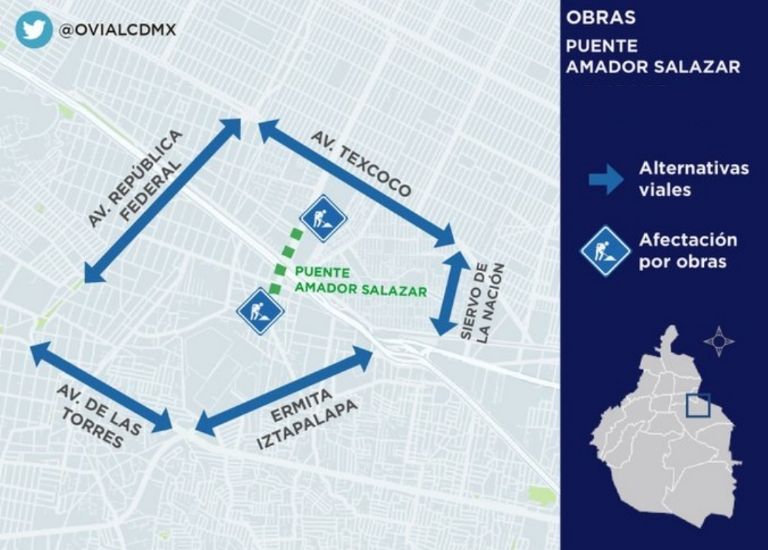 - Está cerrada la circulación del puente vehicular Amador Salazar, en la alcaldía Iztapalapa, por obras de mantenimiento. Las opciones viales son: