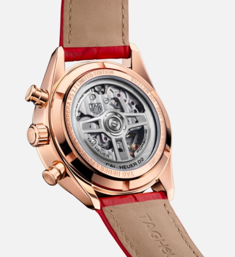 Al igual que el de oro rosado este cuenta con un calibre automático Heuer 02, con una reserva de marcha de 80 horas.