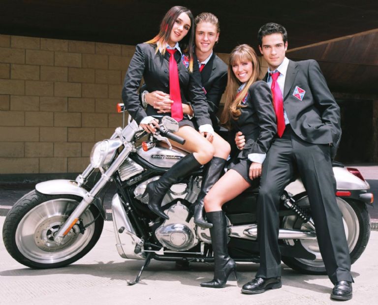 Una de las instantáneas más conocidas de la agrupación mexicana es aquella en la que se ve a Roberta Pardo, Mia Colucci, Miguel Arango y Diego Bustamante posando junto a una imponente motocicleta color plateado.
