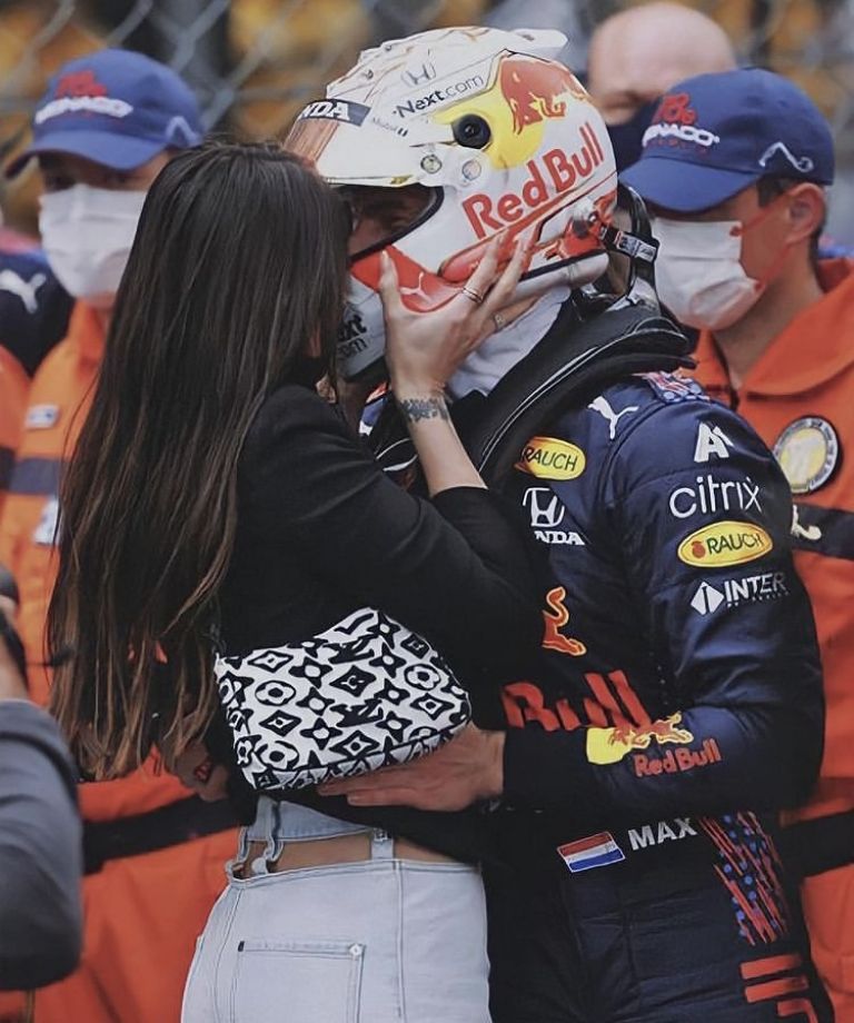 A finales de 2020, los ojos de todo el mundo se posaron en la pareja que acababa de anunciar su relación en una breve pero contunde publicación de redes sociales en la que el neerlandés aparecía con la brasileña celebrando la llegada de un nuevo año.  Para 2021, la prensa no podía dejar de hablar de la bella mujer que había corrido a abrazar al piloto de Red Bull luego de que resulta campeón del mundo, y que lo acompaña como su mayor fan hasta el día de hoy.