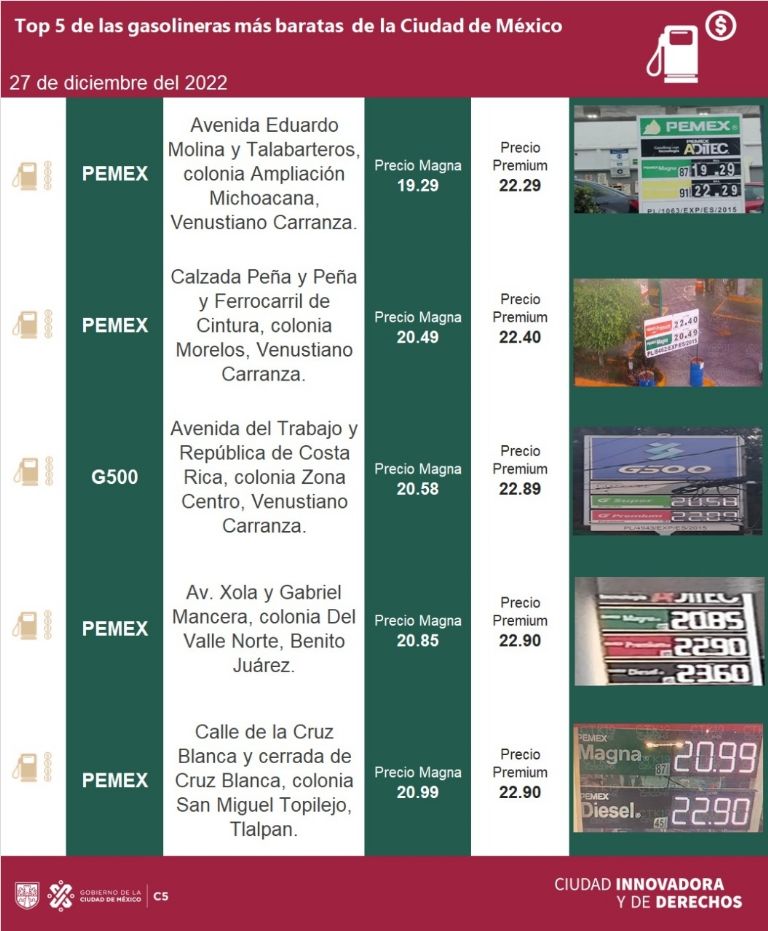 Te compartimos las 5 gasolineras con la gasolina más barata hoy 27 de diciembre de 2022: