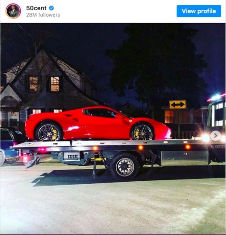 Luego de la falta de mantenimiento a su 488 GTB y de que este no arrancara, 50 Cent tomó su cuenta de Instagram para despotricar en contra de Ferrari, estos comentarios se sumaron a la costumbre que el cantante tenía de limpiar sus coches con Champagne, y que no causaron ninguna gracia al fabricante de autos.