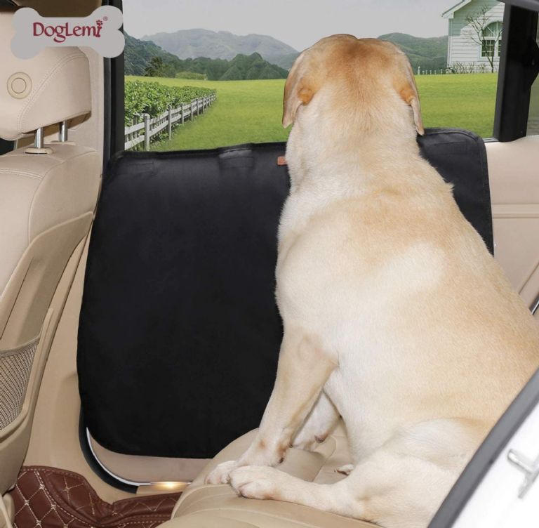 Con dimensiones de 64 cm de largo y 54.5 cm de ancho, este protector esta fabricado en poliéster, y además de proteger las puertas de los arañazos, también lo hará de manchas o fluidos como saliva.