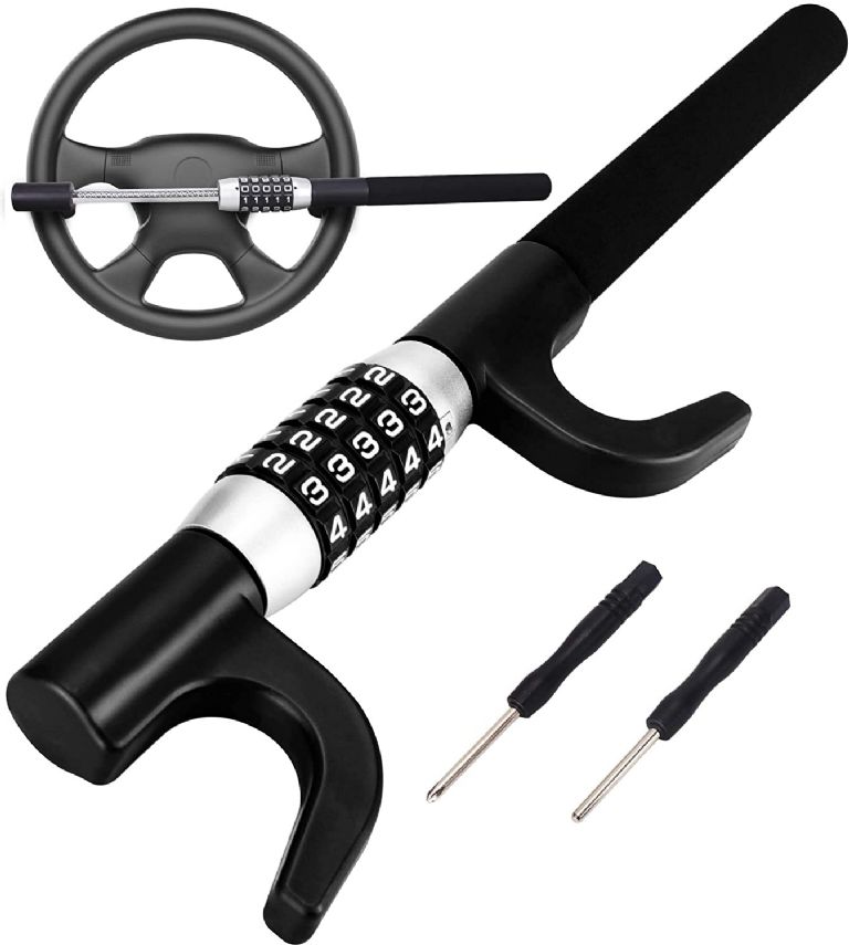 Este dispositivo extensible es uno de los básicos que los automovilistas utilizan para proteger sus vehículos desde hace varios años, sin embargo, este se desbloquea a partir de 5 combinaciones de números codificadas, además de que incluye un sistema de doble gancho que se ajusta de mejor manera al volante.
