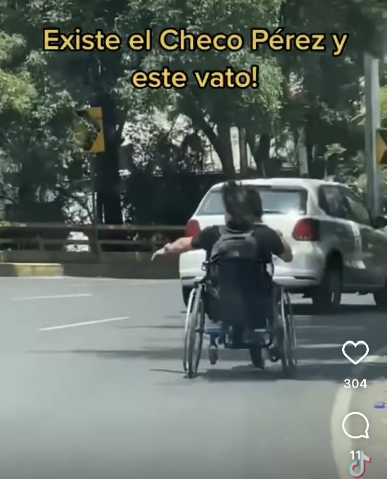 Hace algunas horas el usuario @fershorts1 compartió un clip que grabó cerca del Circuito Interior Melchor Ocampo, a la altura de Rio Misisipi en el que todo parece normal con automóviles circulando de manera cotidiana, sin embargo, durante los primeros segundos aparece a cuadro un joven que va a bordo de una silla de ruedas modificada.