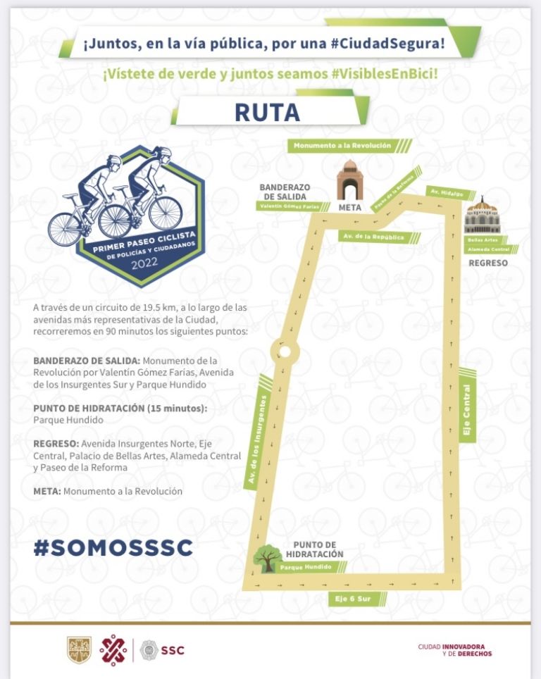 La SSC está solicitando que durante la rodada, todos los asistentes porten casco, cubrebocas y calzado cómodo.