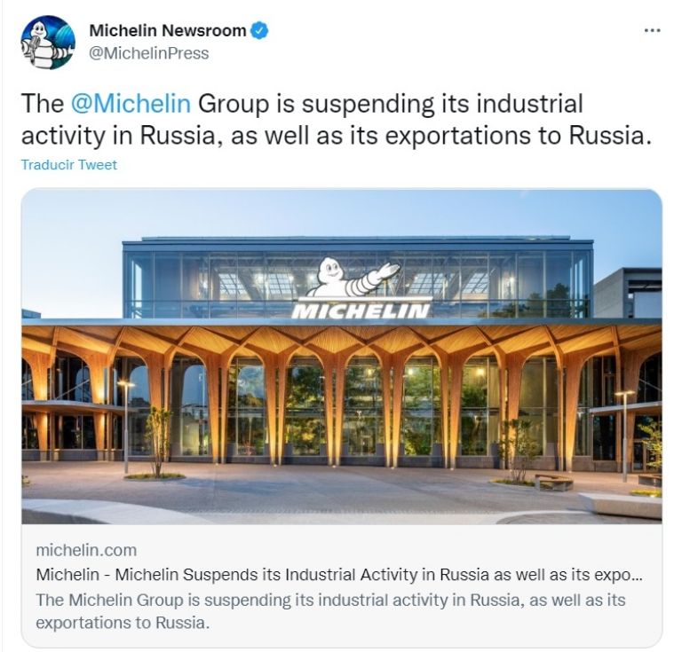 Actualmente, el 2% del total de las ventas de Michelin se efectúan en Rusia; no obstante, de acuerdo con la información emitida por el grupo, esto no afectará sus objetivos financieros.