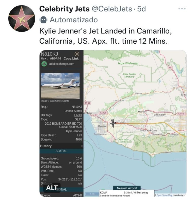 Esta cuenta especializada también hizo importantes descubrimientos al demostrar que Kylie Jenner regularmente hace vuelos de no más de 15 minutos.