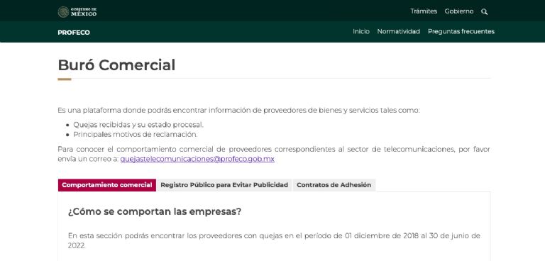 - Ingresar a la página web de Buró Comercial PROFECO