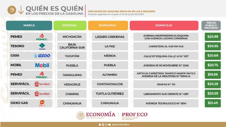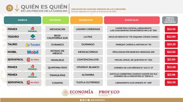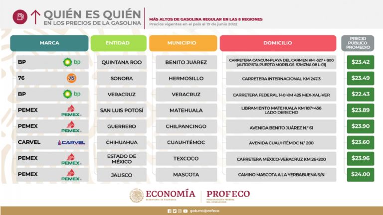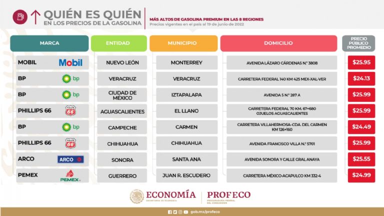 En la conferencia de prensa del presidente Andrés Manuel López Obrador del pasado lunes, el titular de la Profeco, Ricardo Sheffield Padilla, informó que las tres marcas con los precios más altos de combustibles fueron: