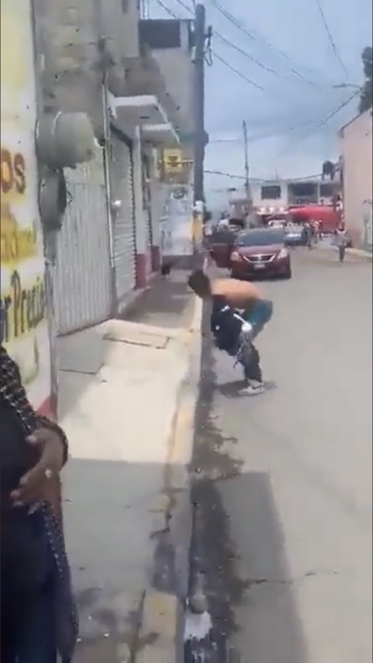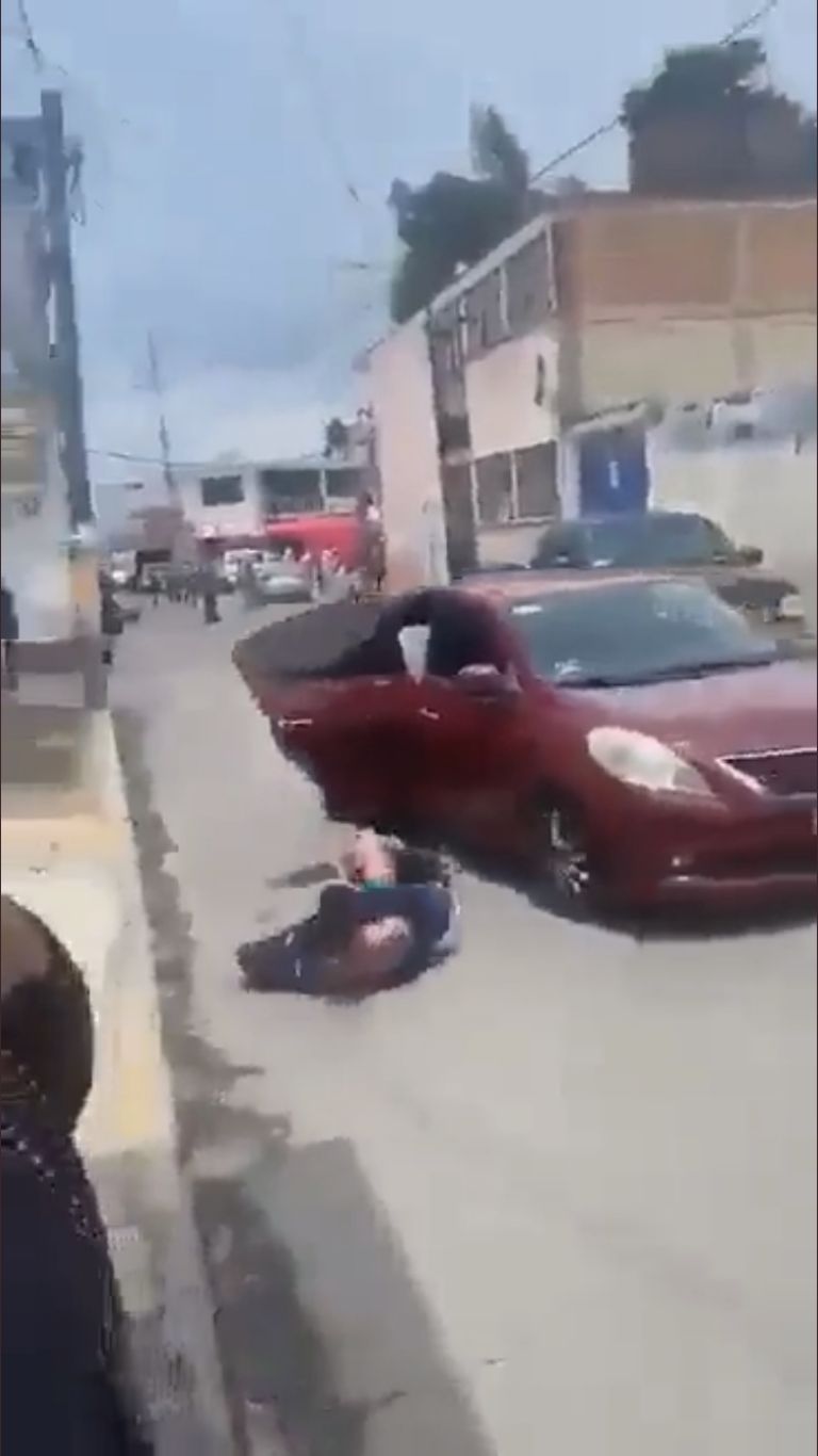 Una vez que el automóvil pasa enfrente de los vecinos que están grabando todo el suceso, se puede ver como el joven pelea con su captor y pide ayuda desesperadamente. Luego de unos instantes de terror, y debido al movimiento del automóvil que está siendo manejado de reversa, el joven sale disparado de la unidad, cayendo a la carretera mientras los asaltantes continuan su camino, desapareciendo en la calle.