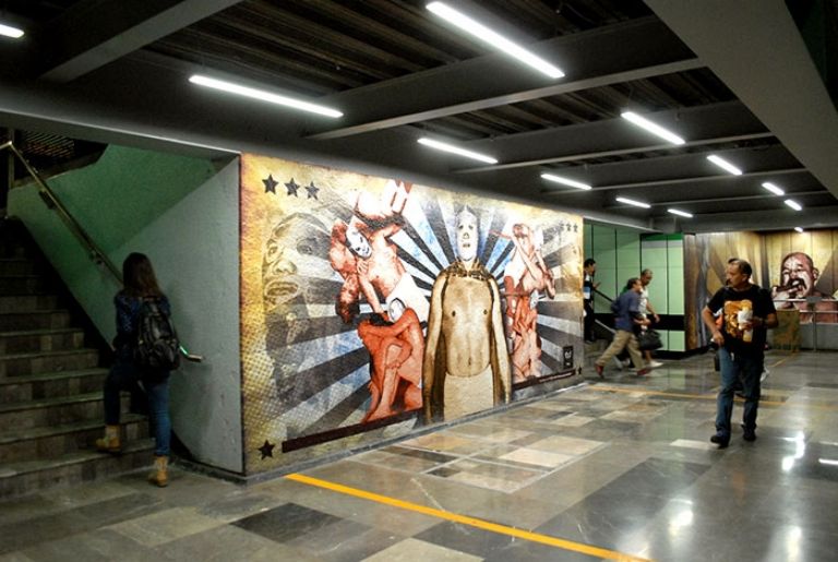 ¿Acaso hay un deporte más mexicano que la Lucha Libre? Como era de esperarse, una de las estaciones más concurridas de la red aguarda en su interior una exposición en la que los pioneros de la Lucha Libre son homenajeados a través de murales y fotografías inéditas de El Santo y demás estrellas.