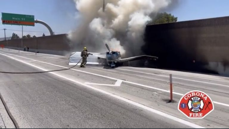Según informes de medios locales, este martes una aeronave privada que tenía como destino el Aeropuerto Municipal de Corona, California, tuvo que detenerse de manera inesperada en la autopista, luego de el piloto se diera cuenta de que la avioneta tenía un fallo en el motor que le impediría llegar a su destino.