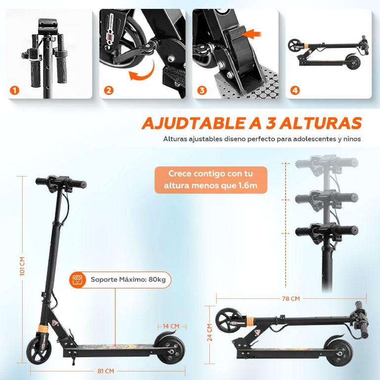 El vendedor menciona que este scooter ha sido diseñado para personas a partir de los 8 años en adelante, soportando una carga máxima de hasta 65 kg.