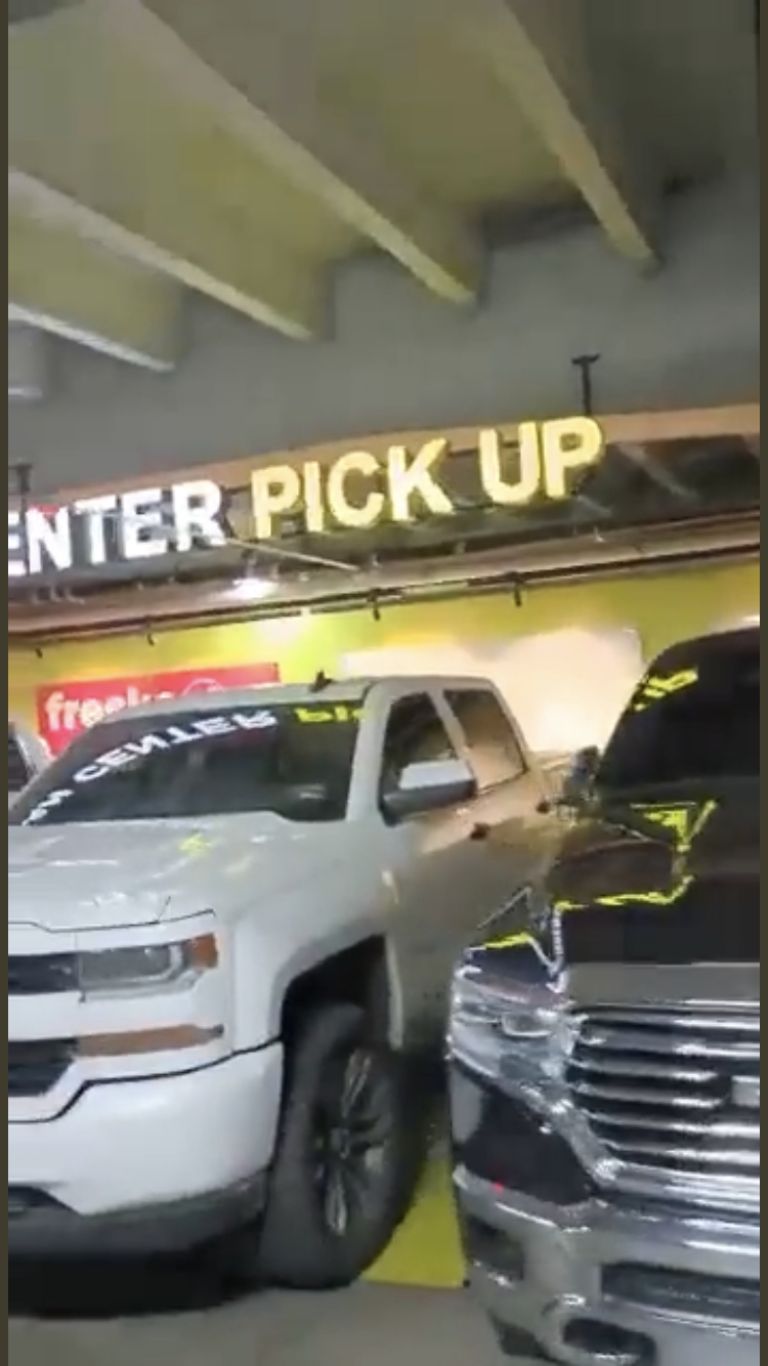 En la parte de arriba hay un letrero que dice “Urban Center Pick Up”, refiriéndose a que esa es la zona destinada para recibir compras en línea, no obstante, algunos conductores estacionaron sus camionetas ‘pickup’ al ver el anuncio.