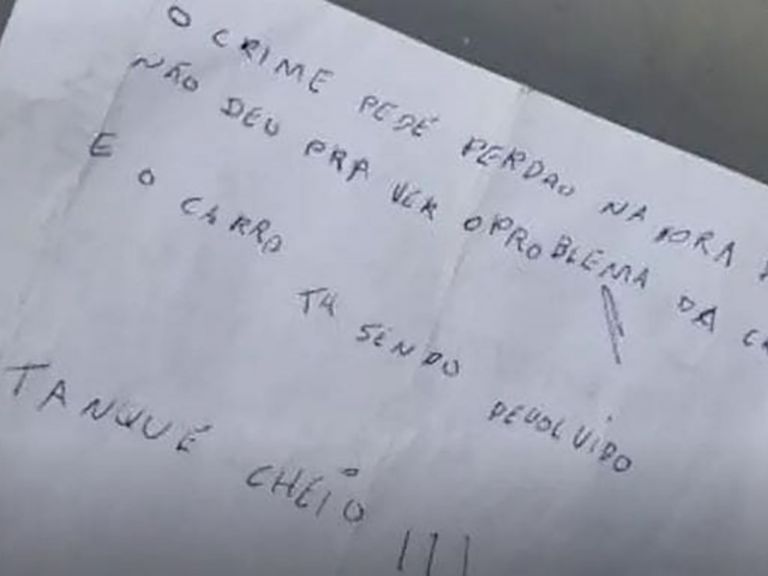 “El crimen pide perdón. En el momento de la tensión no pude ver el problema del niño. El auto ha sido devuelto. ¡Tanque lleno!”