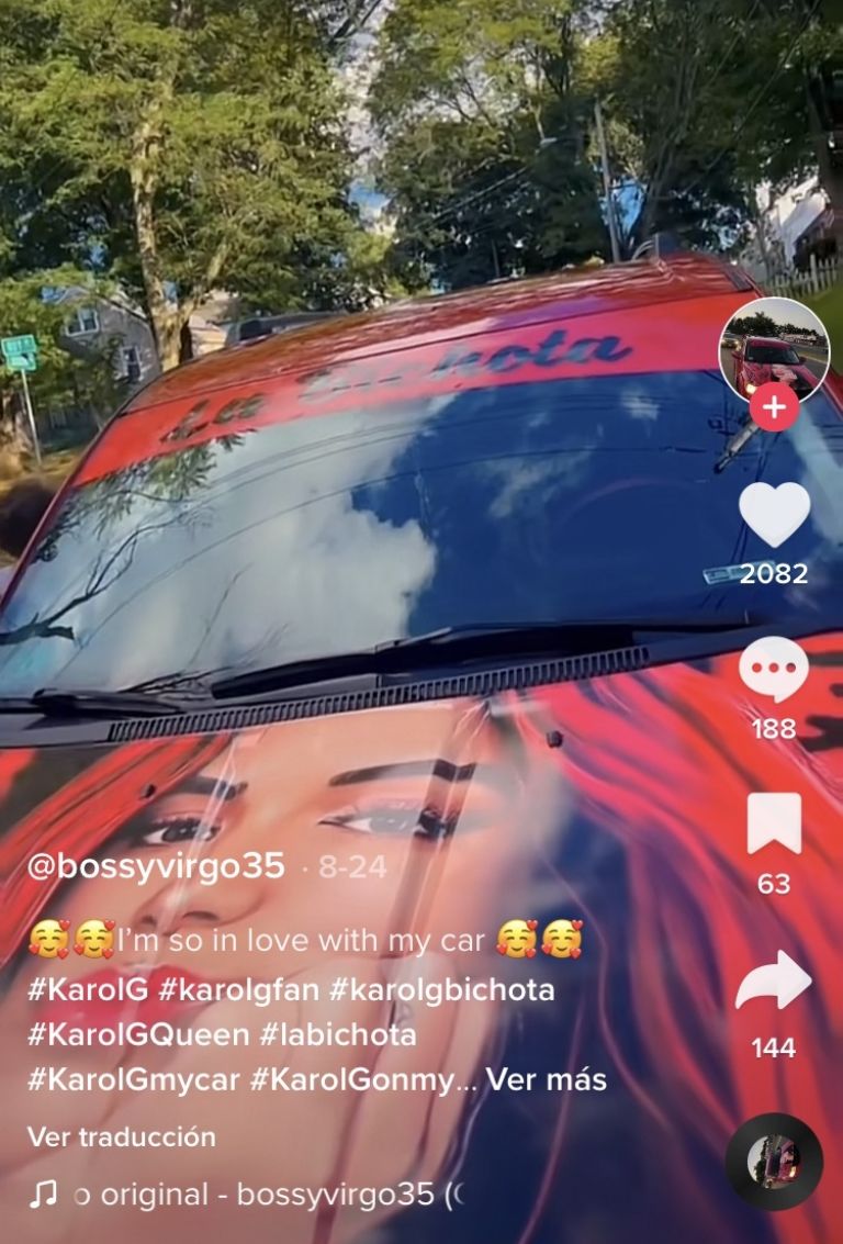 Gracias al ‘ruido’ que miles de usuarios hicieron a través de TikTok, finalmente la misma Karol G vio el resultado de BossyVirgo, y compartió una imagen del vehículo en sus historias de Instagram agradeciendo el gesto.