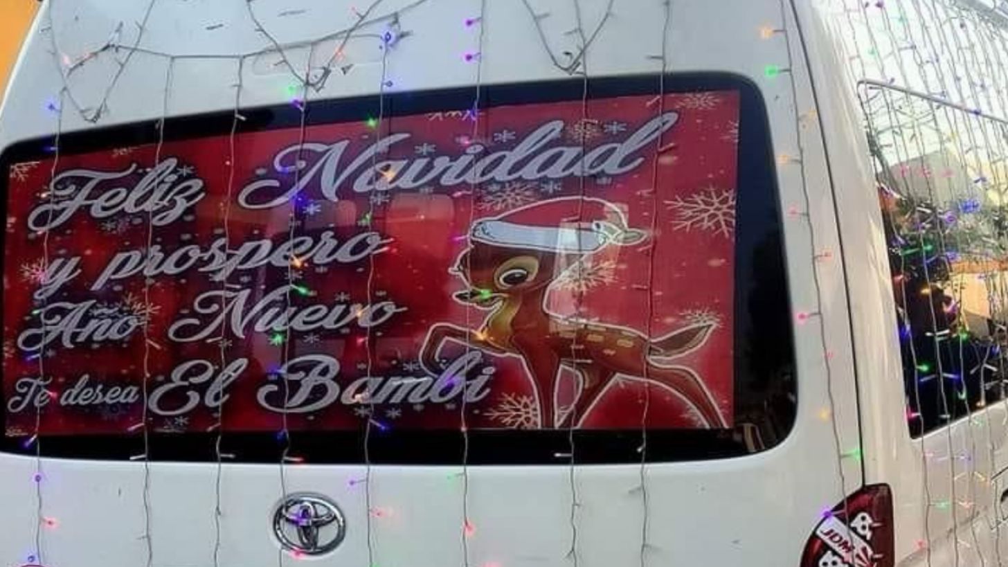 A través de redes sociales, usuarios compartieron videos que se han vuelto virales sobre una combi de la ruta 34 de Toreo a Naucalpan, la cual está decorada con luces navideñas en el exterior e interior de la unidad, renos y el trineo característico de estas fechas el techo.