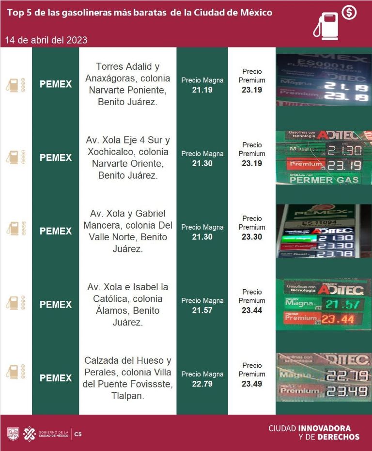 El Centro de Comando, Control, Cómputo, Comunicaciones y Contacto Ciudadano (C5) nos da conocer para este viernes 14 de abril de 2023 hay 5 gasolineras con la gasolina más barata en la Ciudad de México (CDMX) y también nos revela las 5 gasolineras con los costos más elevados.