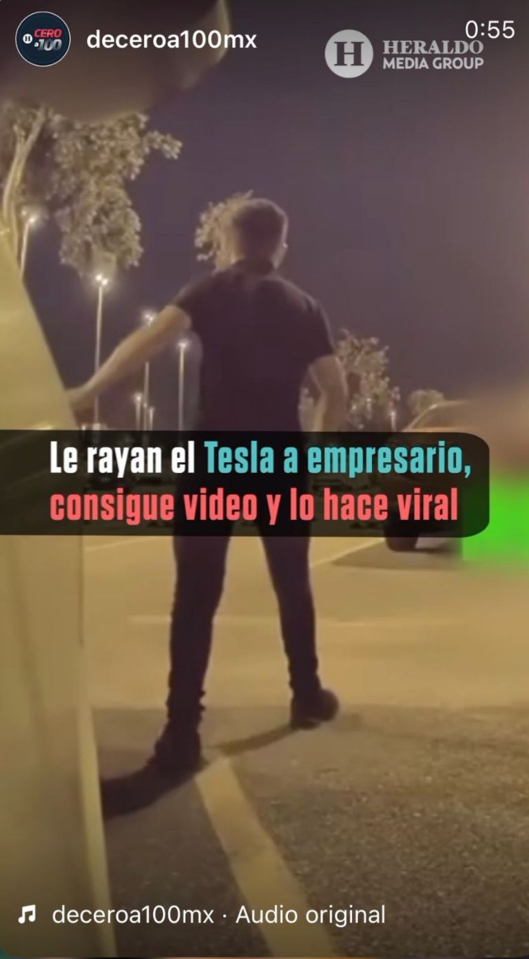 Un hombre se hizo viral luego que se subiera a redes, un video donde se muestra que está rayando un Tesla. Lo que no sabía dicho sujeto es que estaba siendo grabado por el sistema de cámaras del auto. El dueño del Tesla, quien cabe destacar es un empresario reconocido, ofreció recompensa en sus redes sociales para dar con su paradero. Todos estos hechos se suscitaron en plaza ‘La Isla’, ubicada en Mérida, Yucatán.