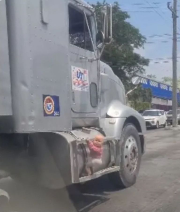 Un suceso muy curioso se dio en las calles de Tampico, Tamaulipas, lugar en donde un usuario registró el momento en el que se observó a un bebé que se encontraba agarrado a las escaleras de la puerta del copiloto de un tráiler.