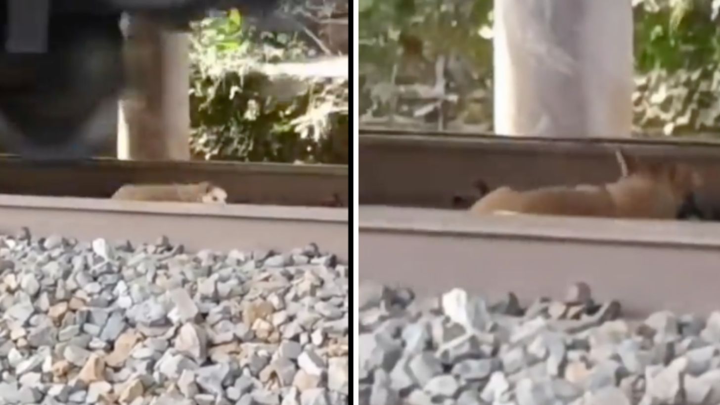 Solo basta por ver el clip de apenas unos segundos para darse cuenta de qué habla. El usuario que está grabando capta el momento exacto en el que el lomito es ‘sorprendido’ por el tren.