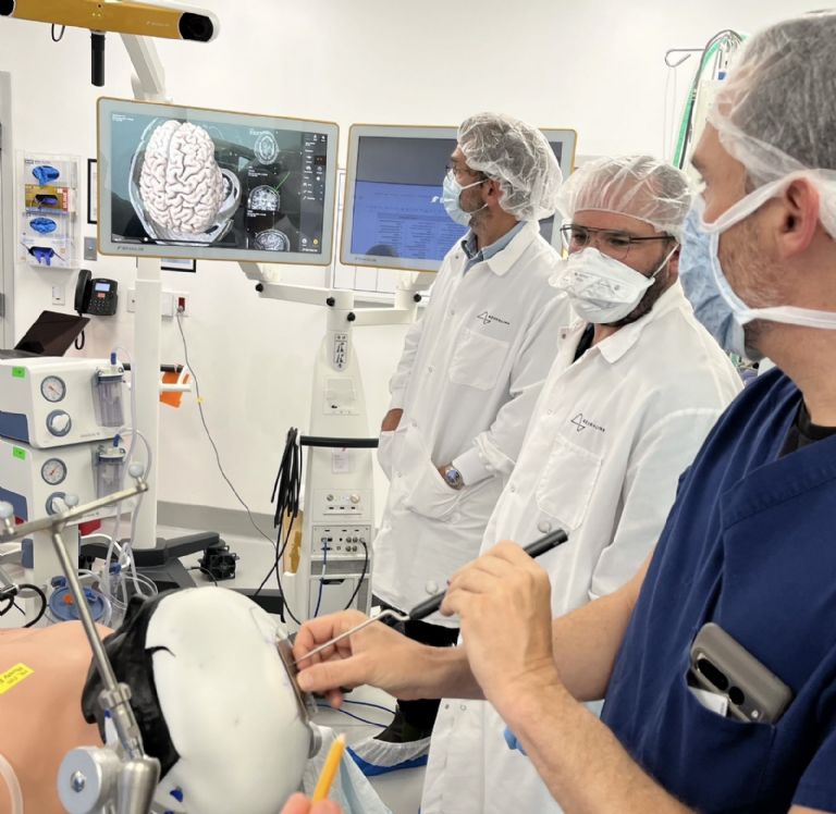 El N1 es un dispositivo circular compuesto de varias capas que se inserta en el cerebro mediante hilos ultrafinos y altamente flexibles, cada uno de los cuales contiene muchos electrodos.