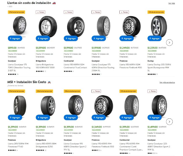Además de la variedad, la tienda proporciona descuentos en artículos seleccionados y opciones de pago a plazos. La promoción aplica a la instalación de llantas, permitiendo a los clientes comprar sus llantas en línea y programar una cita para que las coloquen de manera sencilla y rápida.