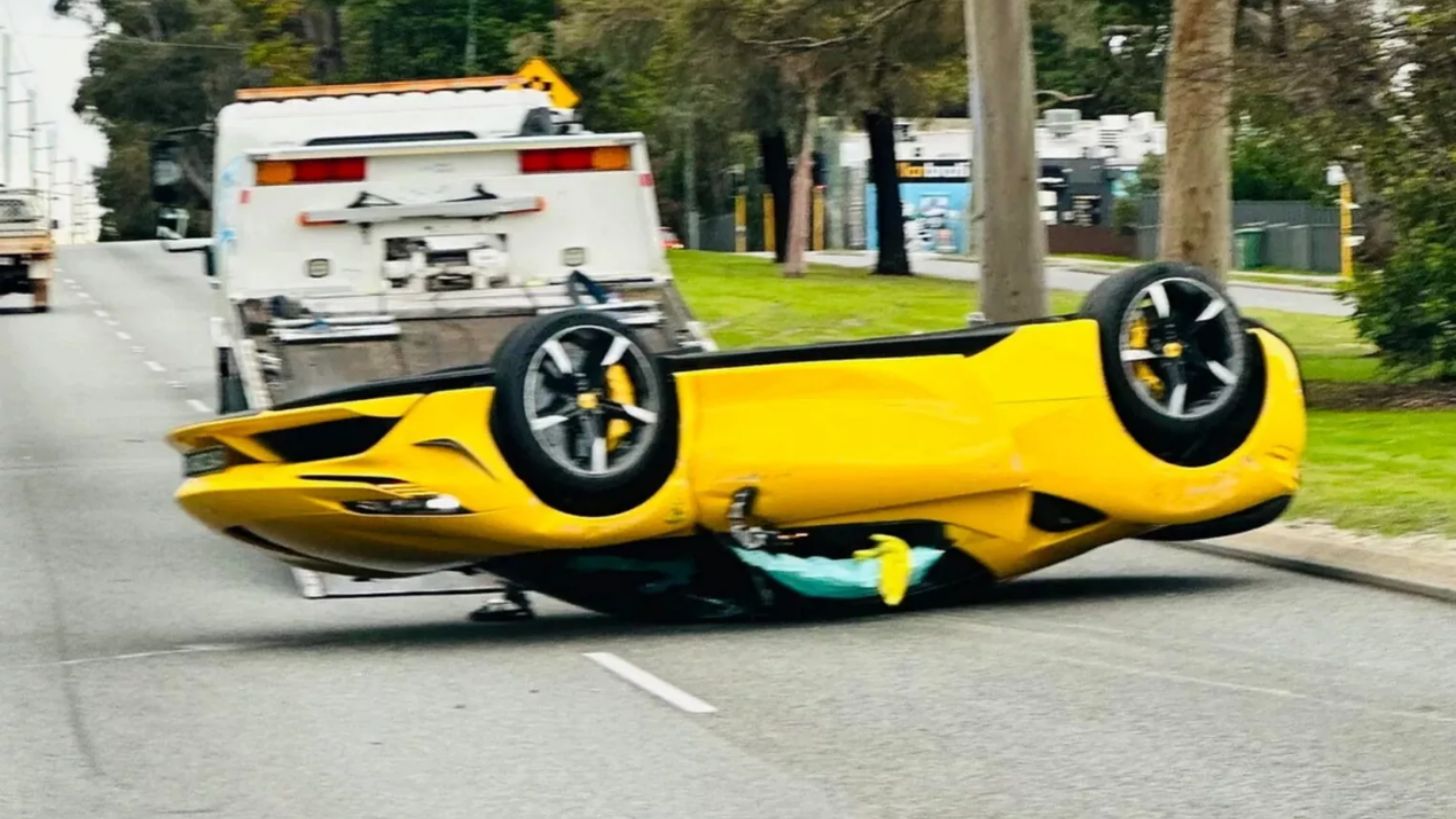 Terminaron con el techo en la carretera y los neumáticos apuntando al cielo tras un accidente en Australia, el accidente ocurrió el sábado 6 de julio en el suburbio de Carlisle en Perth. Las fotografías de lo ocurrido muestran graves daños en un lateral del superdeportivo amarillo; desde los ángulos disponibles, parece ser el único daño significativo en cualquier sección del vehículo.