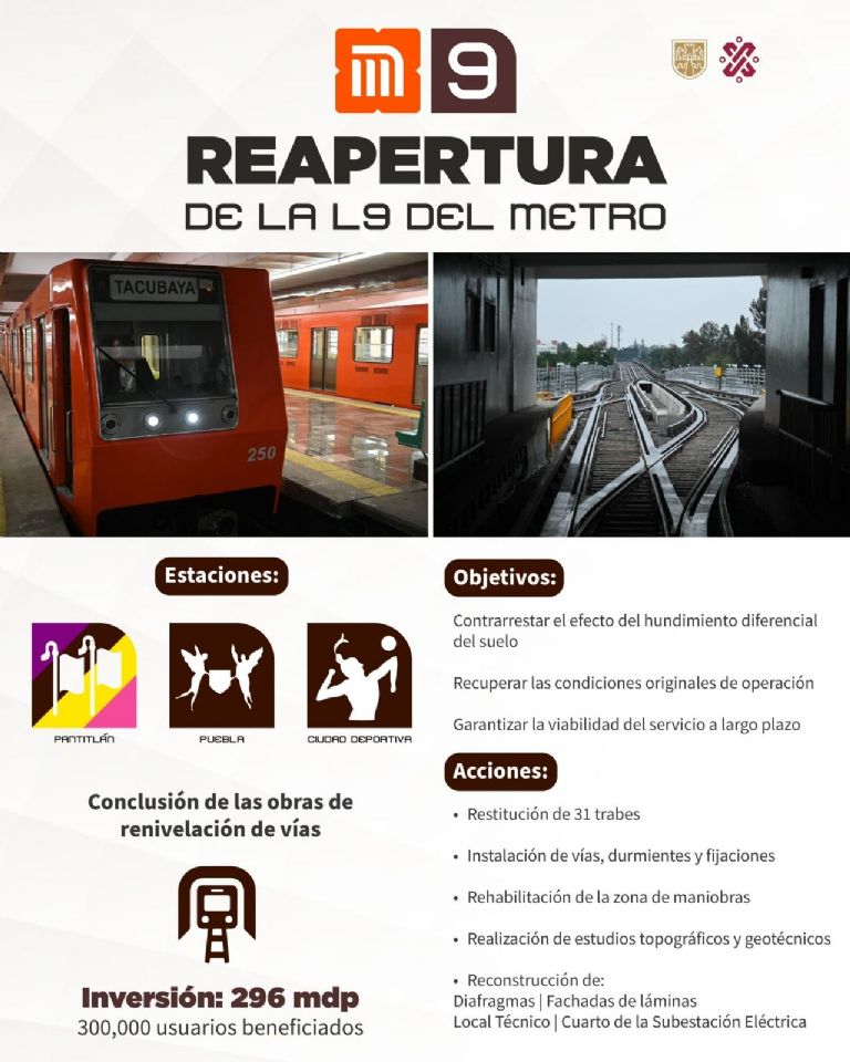 Las estaciones de la línea 9 del metro afectadas, son Pantitlán, Puebla y Ciudad Deportiva, las cuales fueron cerradas por muchos meses debido a trabajos de renivelación.