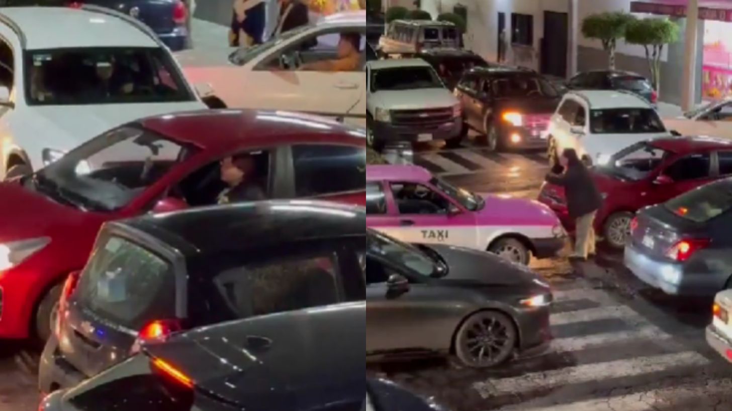Al final, el taxista tuvo que moverse para dejar pasar a la mujer, quien sólo reclamaba el mal acto al conducir un automóvil.
