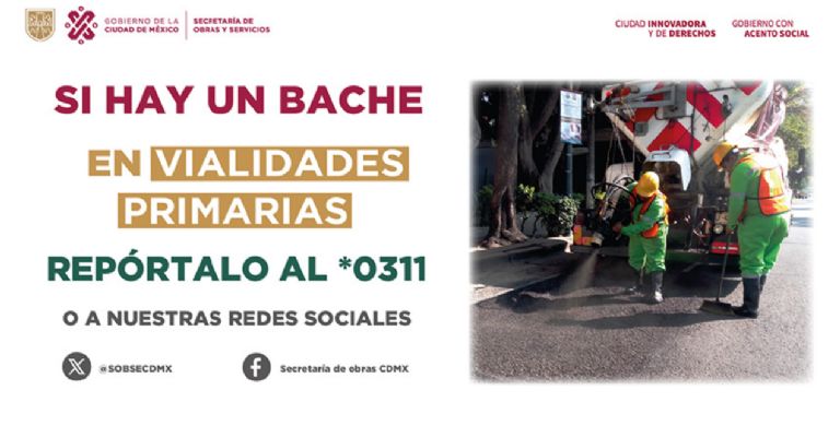 Para reportar baches, puso a disposición de la ciudadanía el número *0311 de Locatel para reportar baches.
