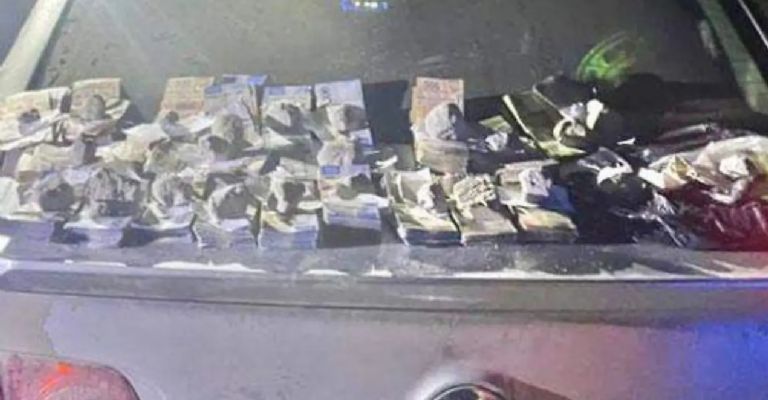 Al finalizar, al interior de la cajuela localizaron en una bolsa de plástico un estimado de un millón 144 mil 200 pesos y 80 dólares, de los cuales no pudo comprobar su legal posesión.