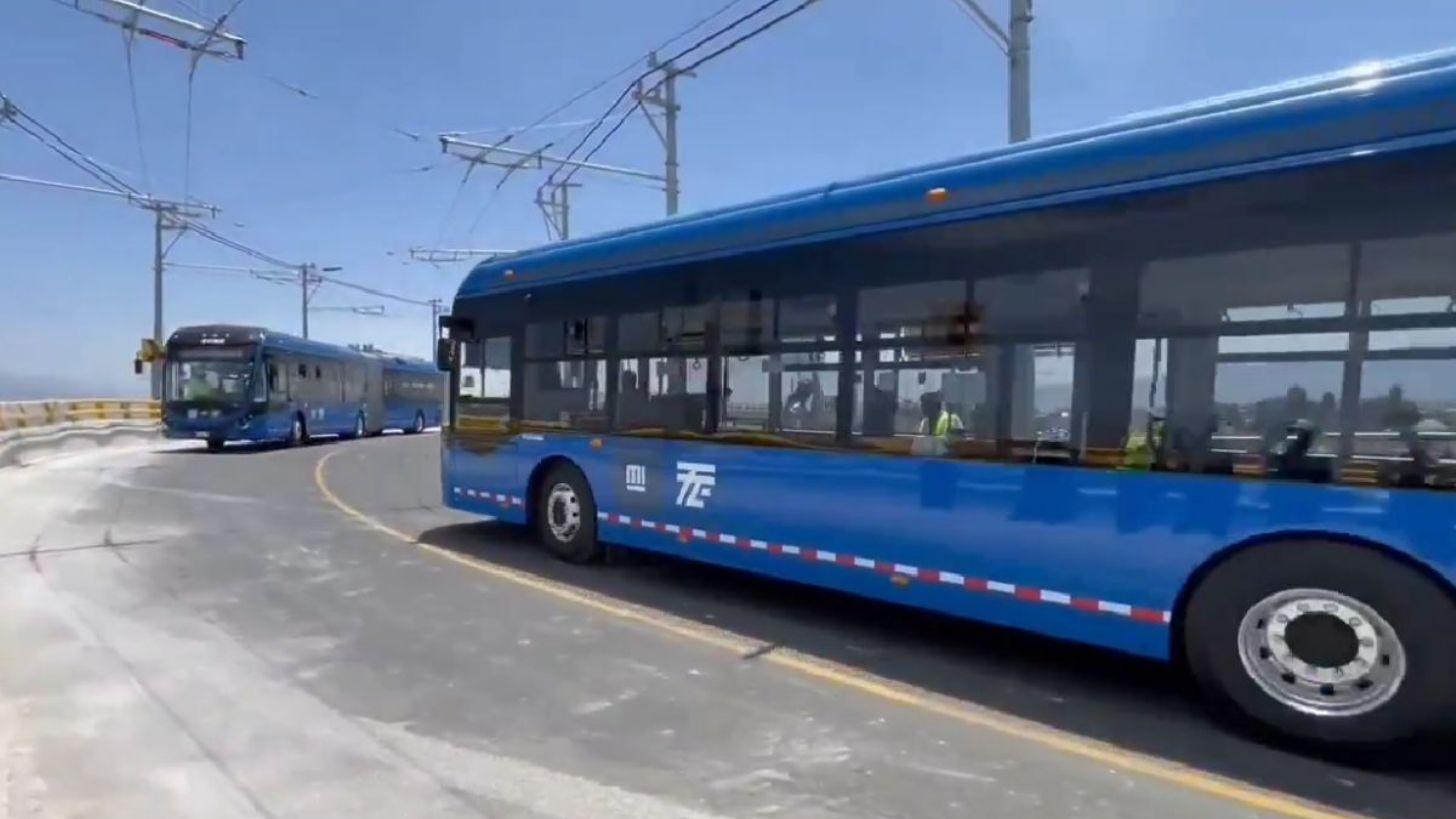 También, a punto de que sea la inauguración del Trolebús Chalco-Santa Martha, ya se realizaron pruebas operativas y circularon algunas unidades que brindarán servicio.