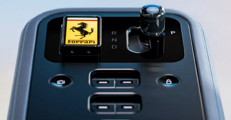 Ferrari ha aprendido de sus errores. Tras las críticas al botón de encendido táctil del SF90, el Luce recupera legado pues insertas una llave de cristal en la consola central, esta cambia de color indicando que el sistema está listo, y el selector de marchas se ilumina.